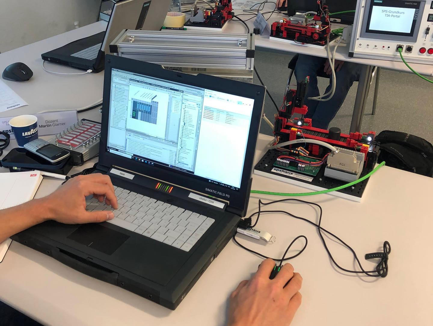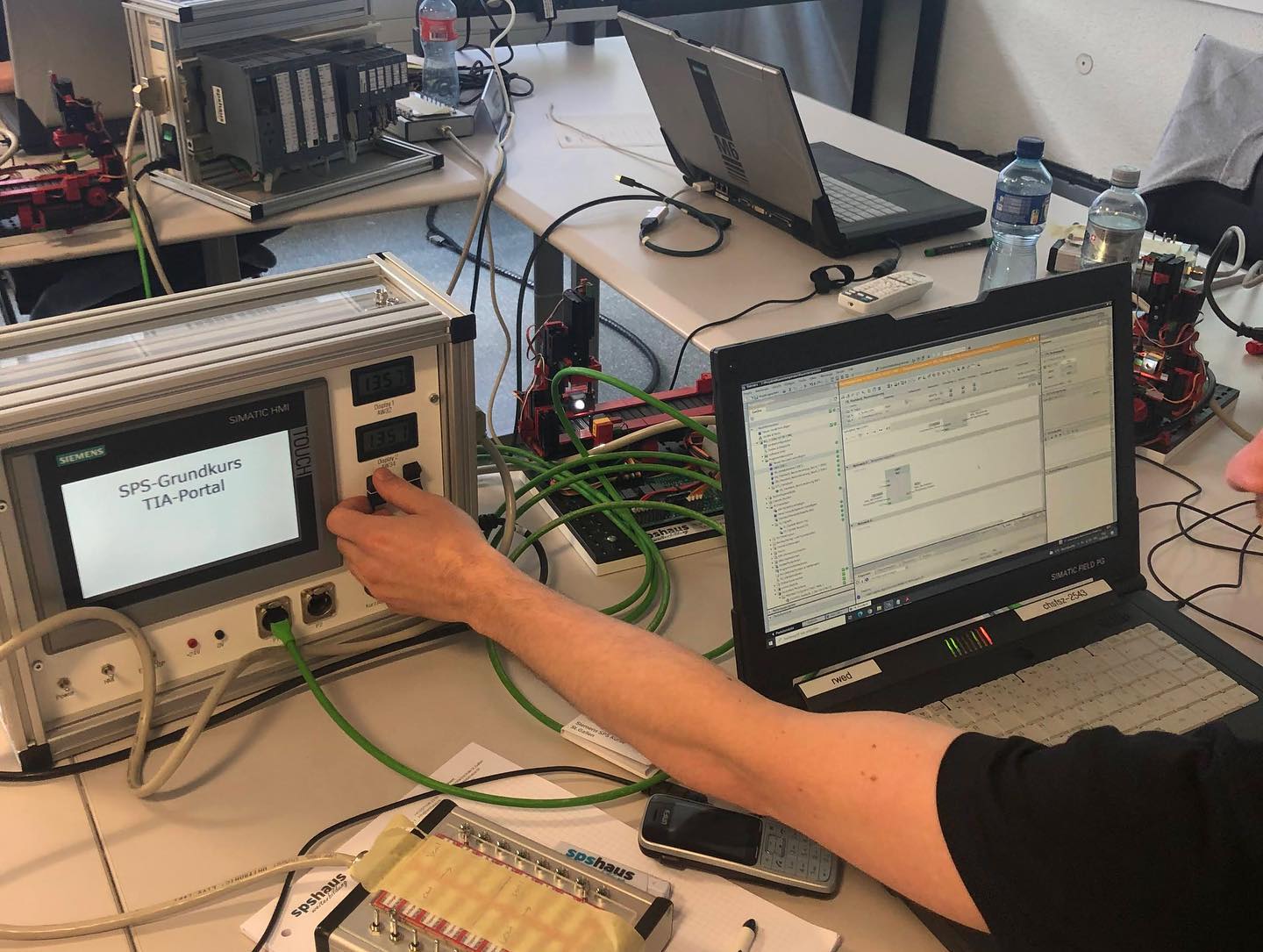 Im Kurs lernten die fünf Teilnehmer die wichtigsten Grundlagen und Funktionen vom TIA-Portal. Ergänzt wurde die Theorie durch zahlreiche praktische Übungen am S7-1500 Modell.