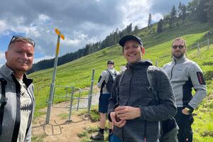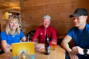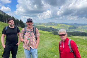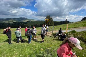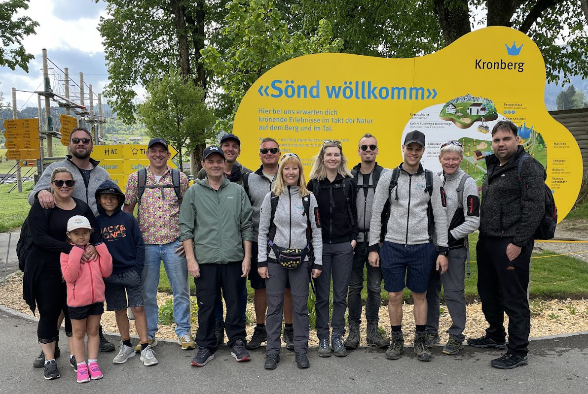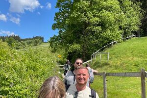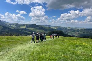 Am Sonntagmorgen trafen wir uns um 10.00 Uhr bei der Talstation der Luftseilbahn Jakobsbad–Kronberg. Von dort wanderten wir bergauf über sanfte Hügel bis zum Gasthaus Scheidegg, wo wir unsere wohlverdiente Mittagspause machten. In der heimelig-warmen Gaststube wurden wir mit feinem Essen und einem kühlen Bier verwöhnt.
