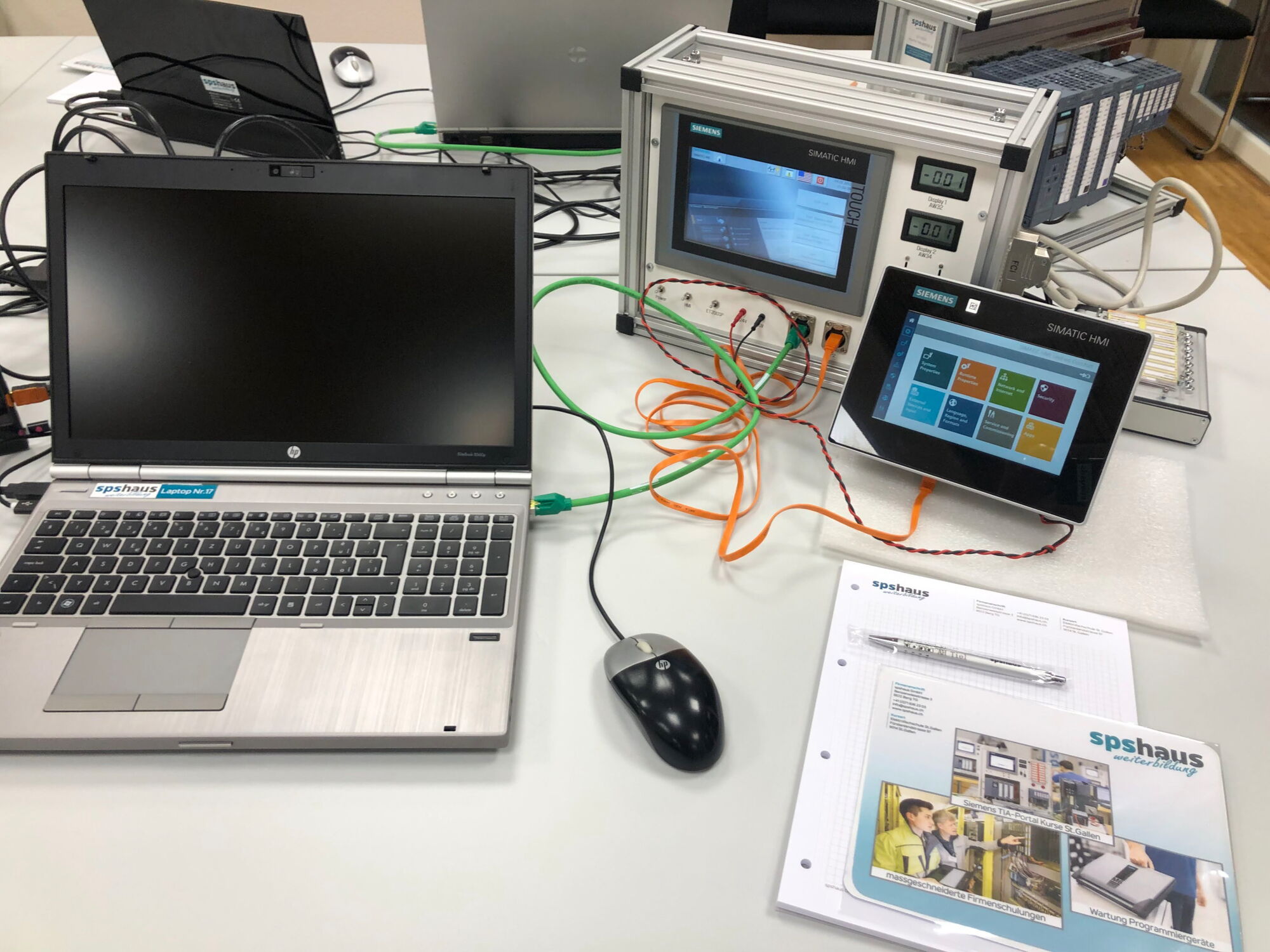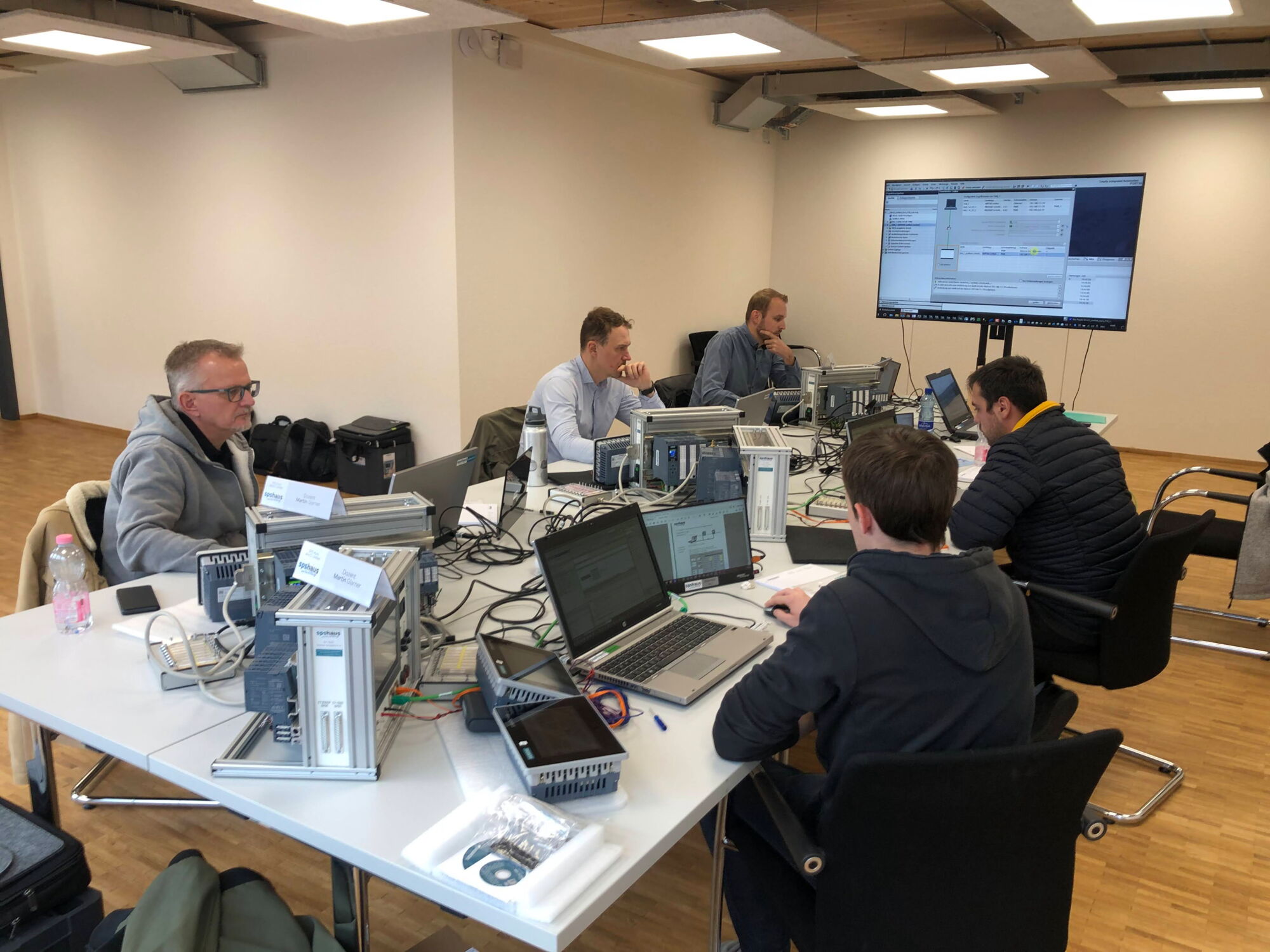 Die fünf Entwicklungsingenieure erweiterten in diesem Crashkurs ihr Wissen im Umgang mit dem neuen WinCC Unified und konnten direkt am MTP700 Panel praktische Erfahrungen sammeln.