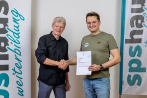 Dieses Jahr haben eine Kursteilnehmerin und zwei Kursteilnehmer die Prüfung zum Automatisierungstechniker mit 90 und mehr Punkten abgeschlossen und werden neu im spshaus-90er-Club aufgenommen.