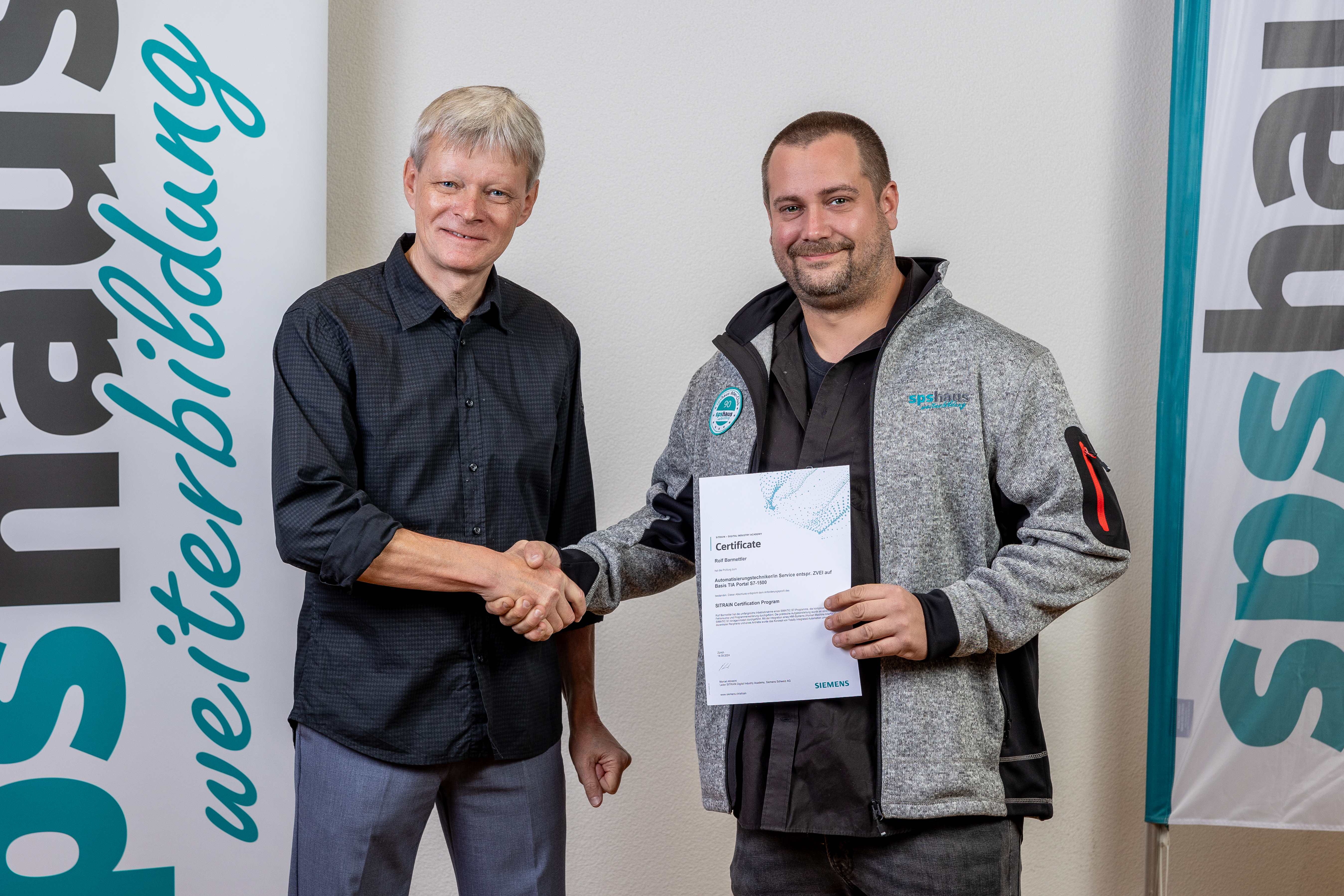 Dieses Jahr haben Ruedi Beeler und Peter Eberhard die Prüfung zum Automatisierungstechniker mit über 90 Punkten abgeschlossen und werden neu im spshaus-90er-Club aufgenommen.